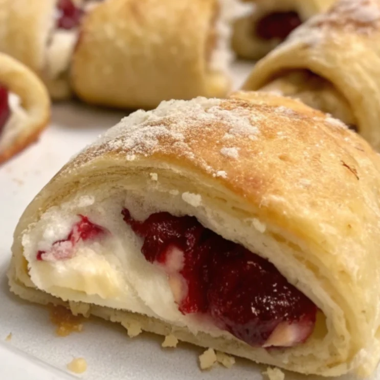 • Close-up of cranberry cream cheese crescent bites baked to golden perfection on a parchment-lined baking sheet.