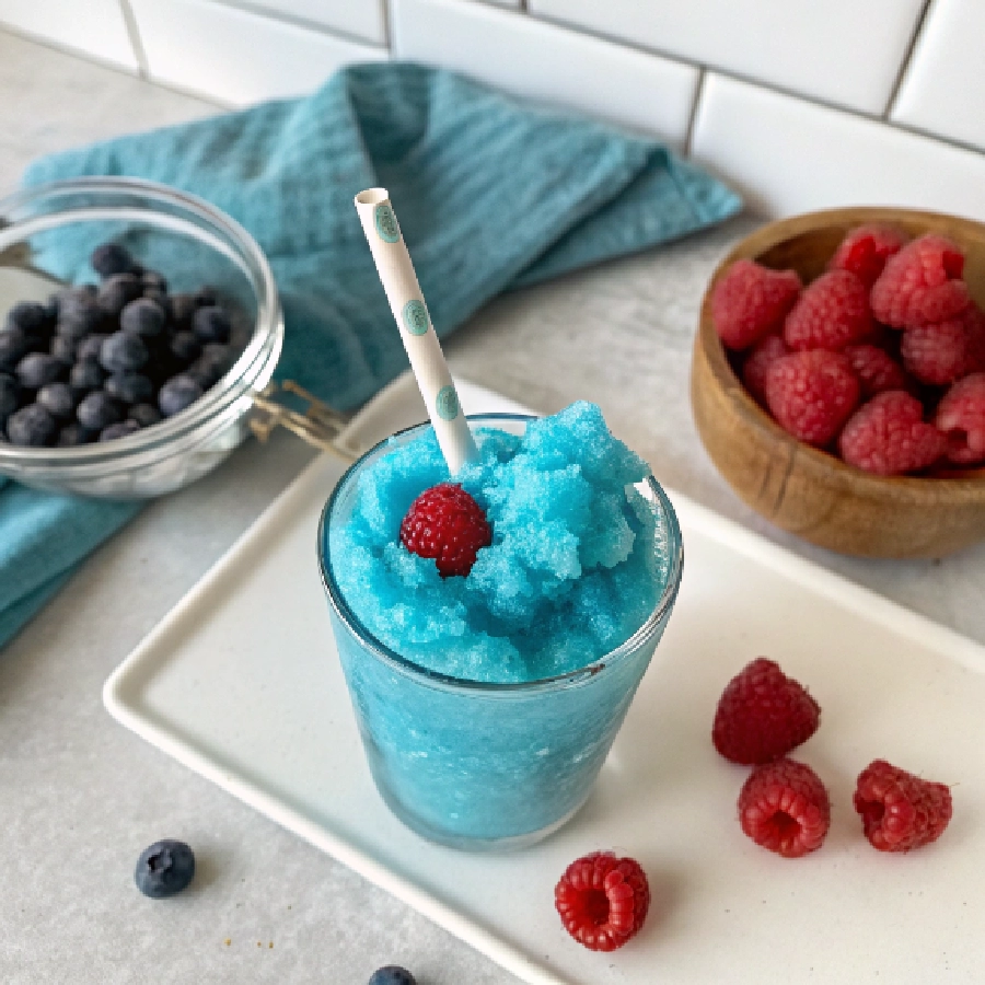 This Blue Raspberry Coconut Slushie combines bold tangy raspberries with creamy coconut into a thick, dreamy frozen drink. The striking blue-purple color and tropical twist make it stand out in any crowd. You need just five minutes and a blender to make this show-stopping slushie.