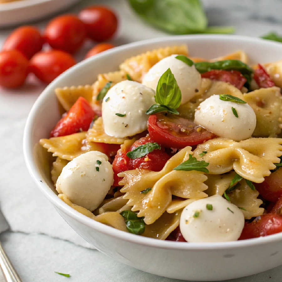 Bowtie Italian Pasta Salad with Mozzarella is the easy cold pasta salad that proves elegance and simplicity are never mutually exclusive. Use farfalle, add the mozzarella pearls gently at the very last moment, scatter the fresh basil generously on top, and serve the most visually refined and creamy Italian pasta salad in your entire collection.