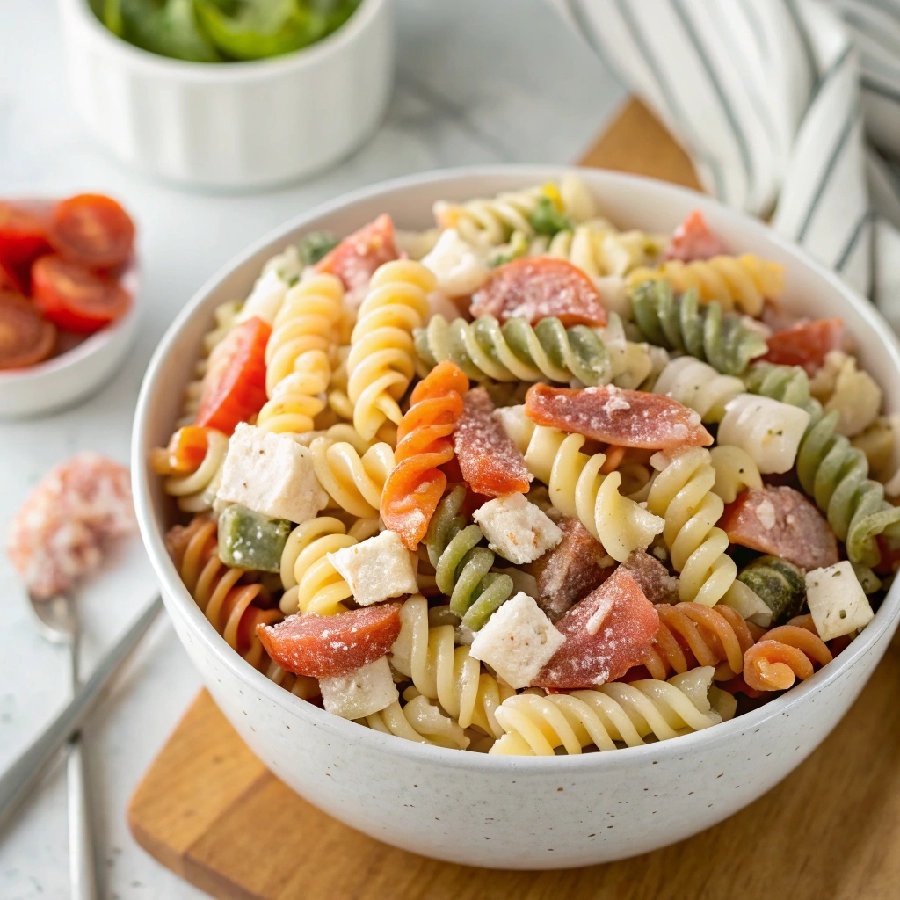 - Always reserve a portion of the ranch dressing for serving because tri-color rotini absorbs creamy dressings particularly aggressively during refrigeration and the salad genuinely needs a fresh generous spoonful right before the bowl hits the table to restore its original glossy, well-coated, vibrant appearance