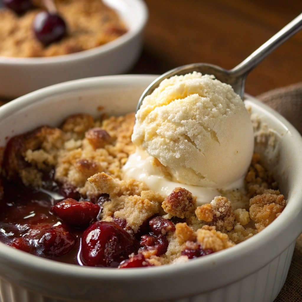 - Scoop warm into bowls and top with vanilla ice cream (the melt + hot cherries is the whole point).