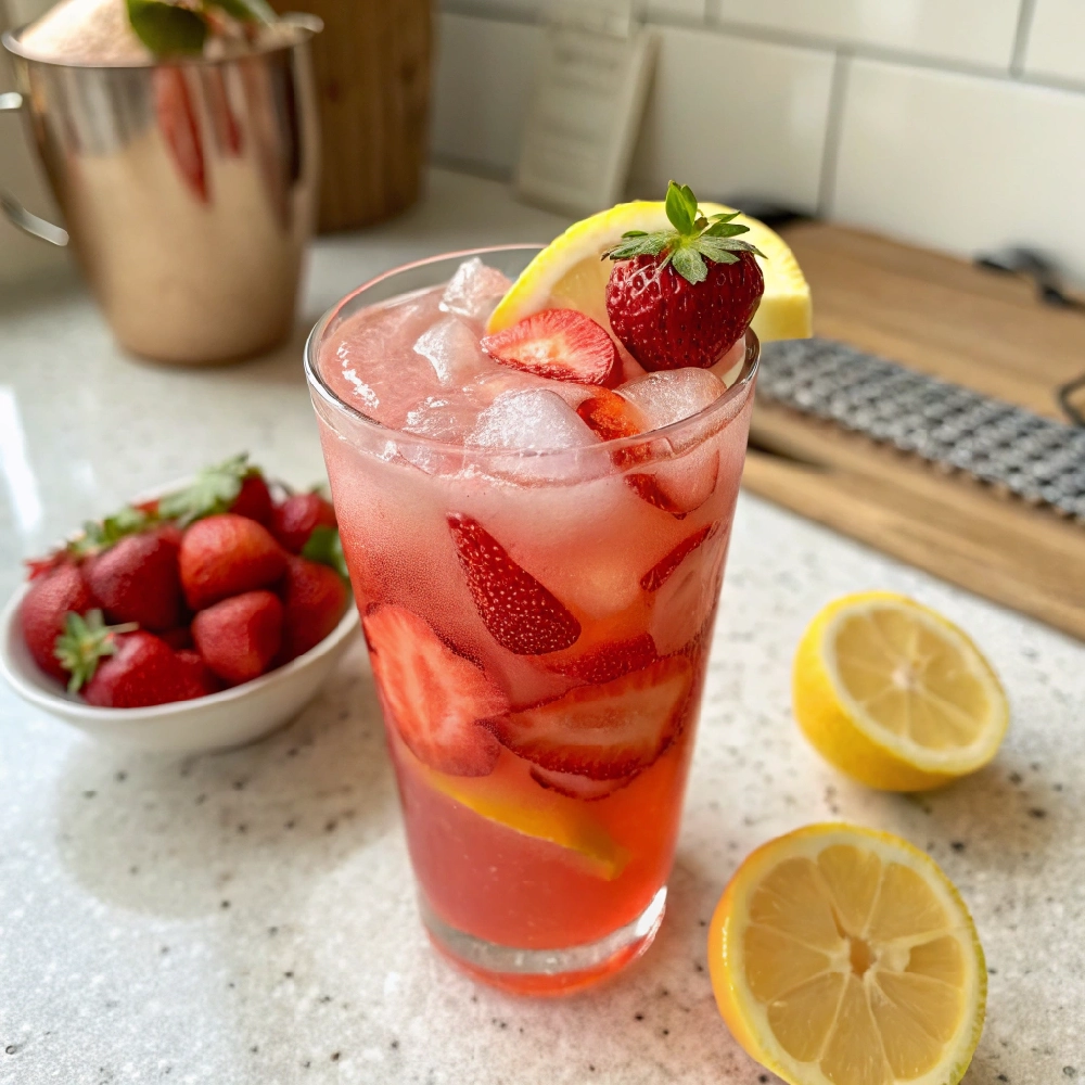 This is a real from-scratch strawberry lemonade made with fresh blended strawberries, freshly squeezed lemon juice, and natural honey, producing a deep ruby-pink color and a flavor so bright and fruity it feels like something from a fancy restaurant. It is naturally rich in vitamin C, completely halal, free from anything artificial, and ready in under fifteen minutes.