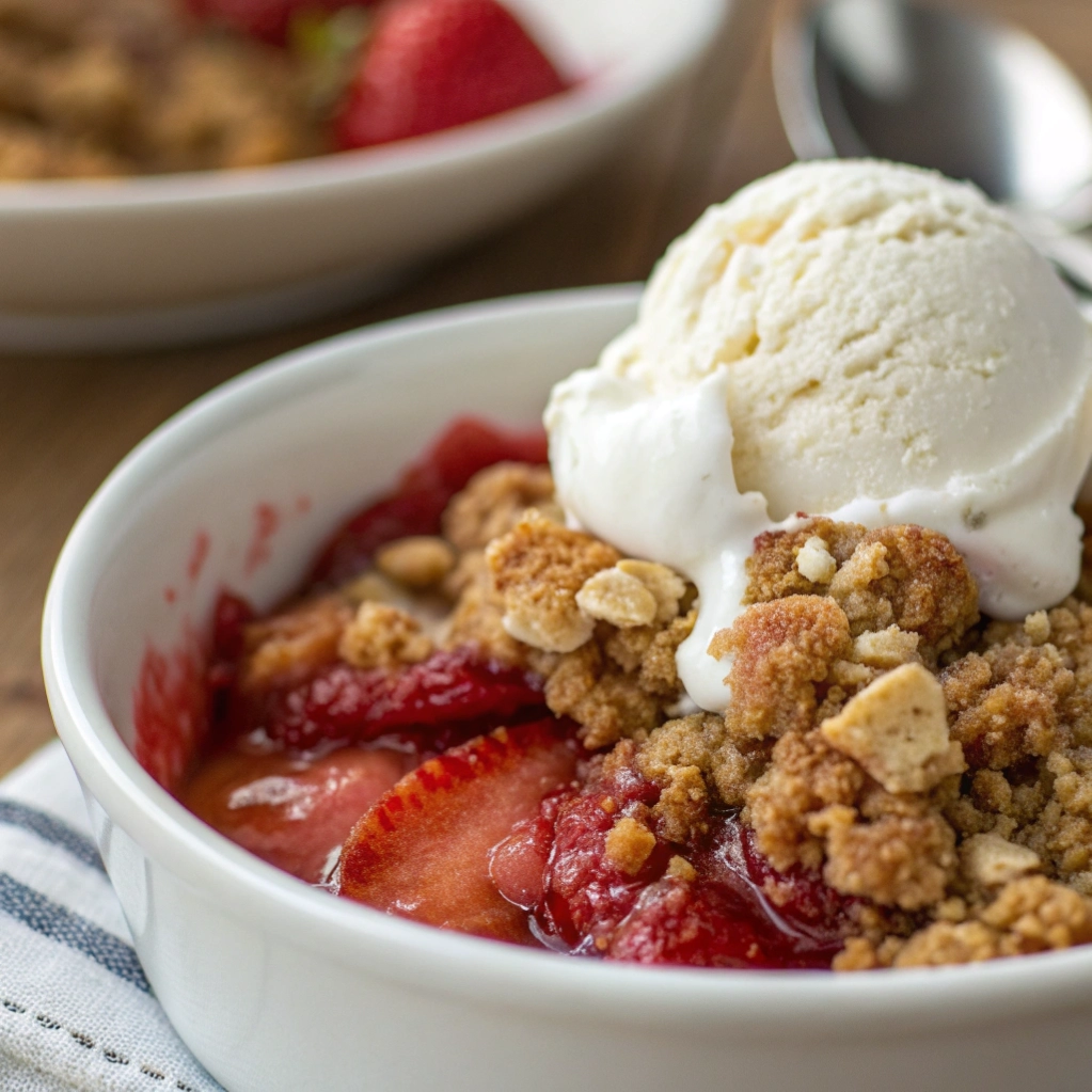 This easy one-bowl strawberry crumble bakes up jammy and bright with a crispy oat topping. You mix the topping, toss the berries, and bake everything in one pan for a simple summer dessert.