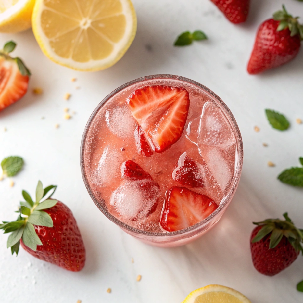 - Add a few fresh mint leaves for a cool herbal strawberry mint lemonade brightness that lifts the rose beautifully