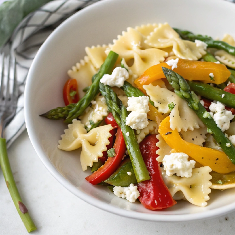 Farfalle Summer Salad with Asparagus, Peppers & Feta