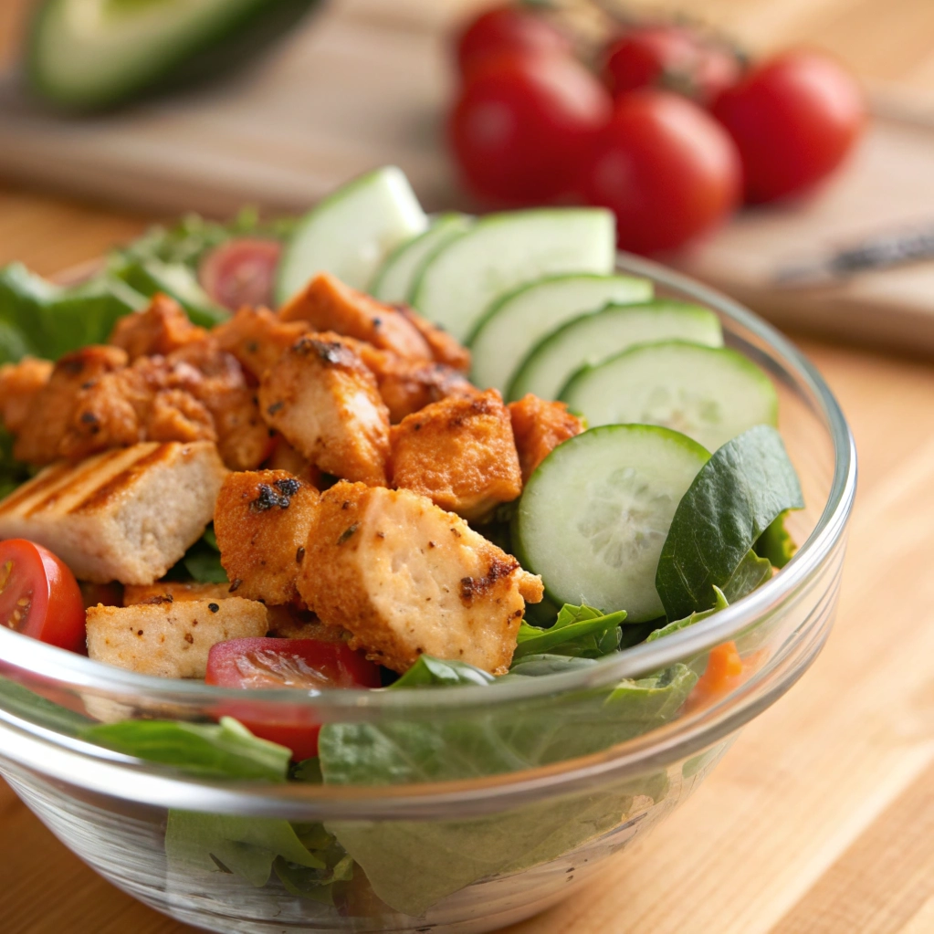 A high-protein, meal-prep friendly salad bowl featuring creamy buffalo chicken made with Greek yogurt. Packed with crunchy veggies and ready in 15 minutes for a week of healthy lunches.