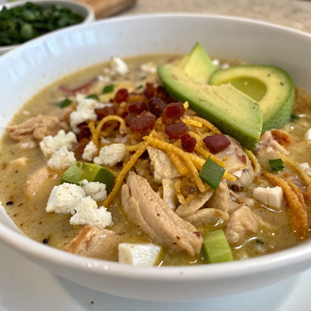 - Serve: Ladle into bowls. Optional toppings: crispy bacon, shredded cheddar, fresh cilantro, avocado, or jalapeños.