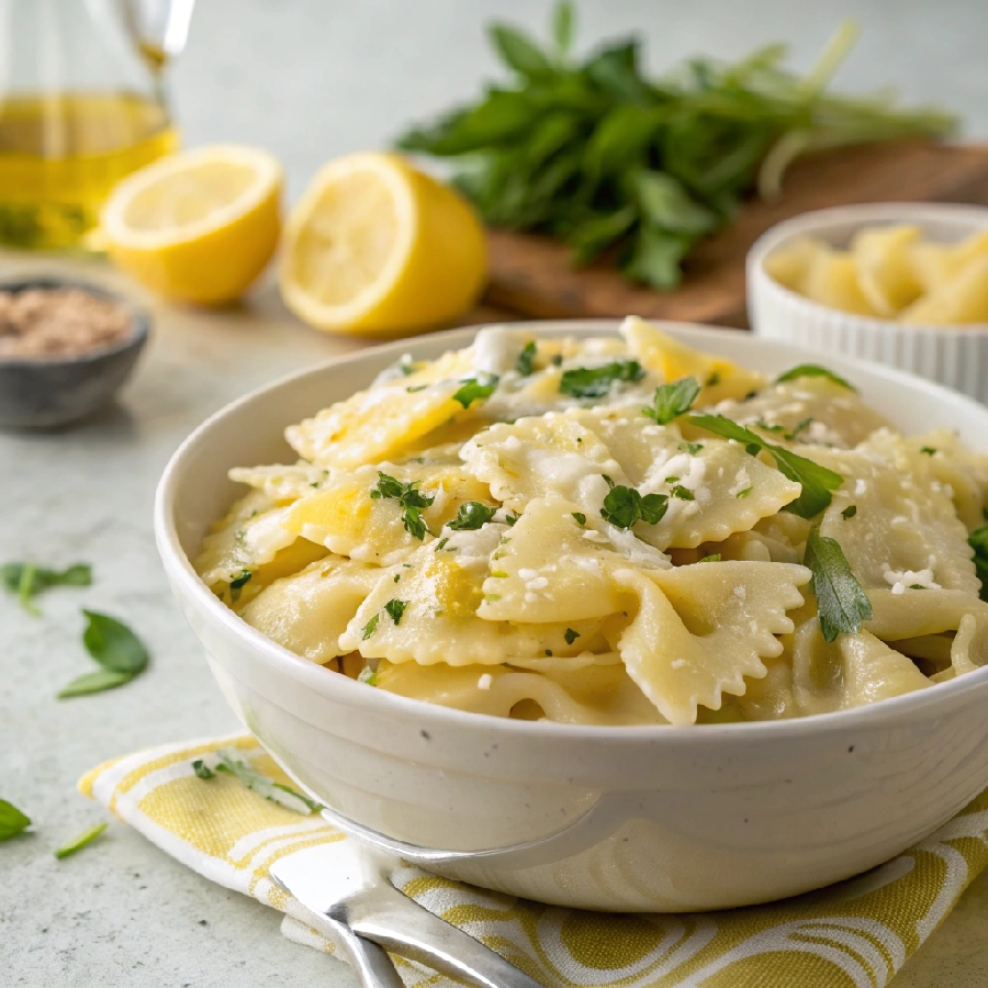 This is the most elegantly presented and sophisticated easy lunch idea in the entire lemon pasta salad collection because the combination of Parmesan shavings, fresh mozzarella pearls, baby arugula, and torn basil creates a bowl that looks genuinely restaurant-quality with almost no additional effort beyond making a simple lemon Parmesan vinaigrette and cooking pasta.