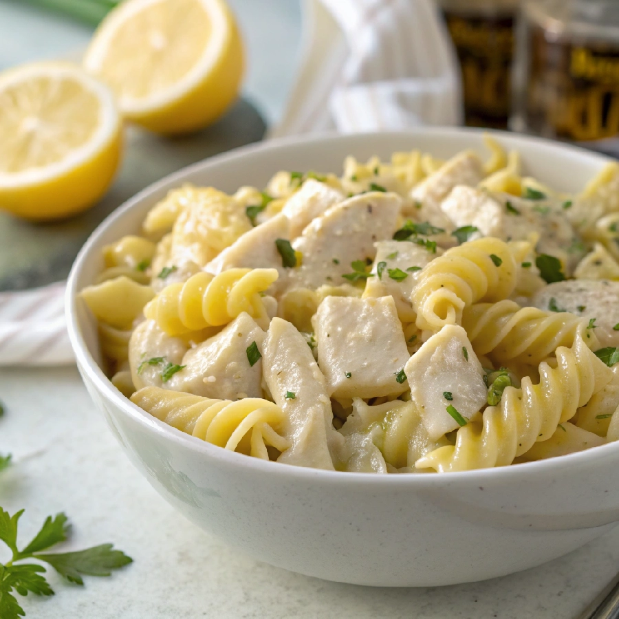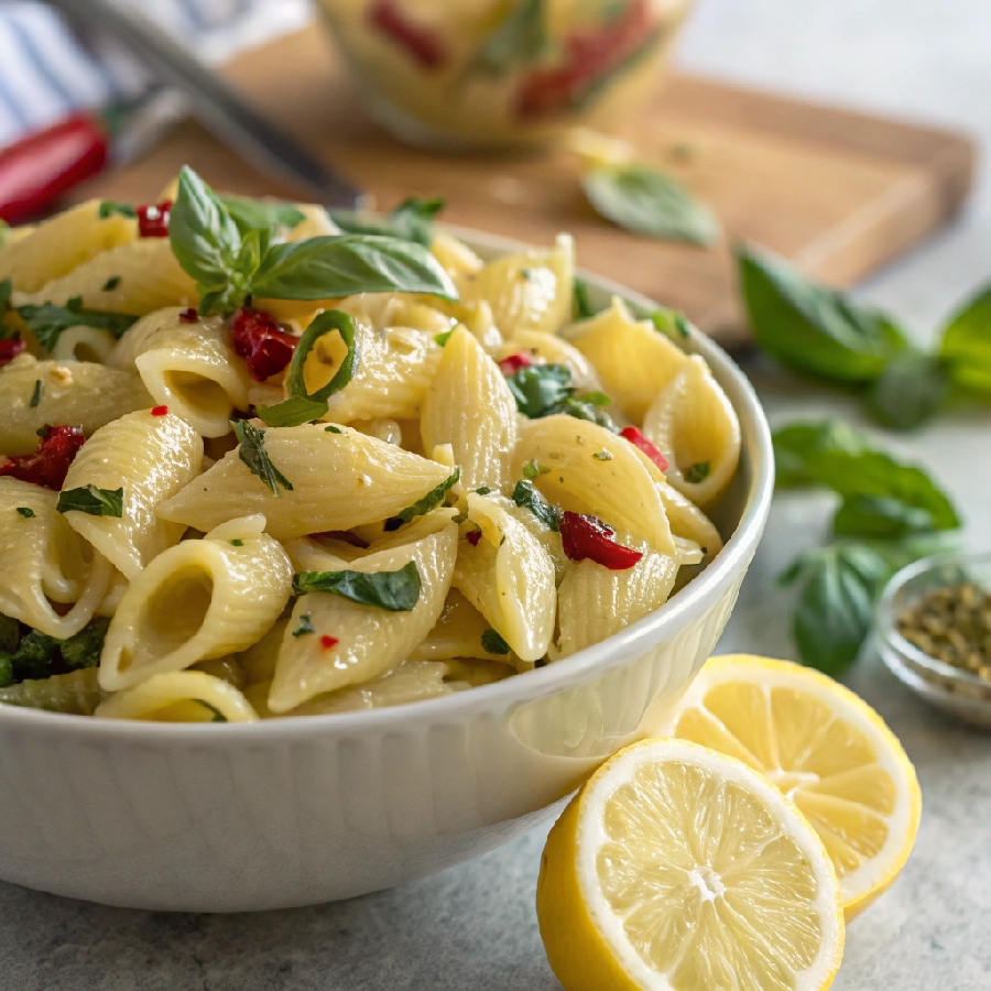 Lemon Bowtie Pasta Salad with Asiago & Basil