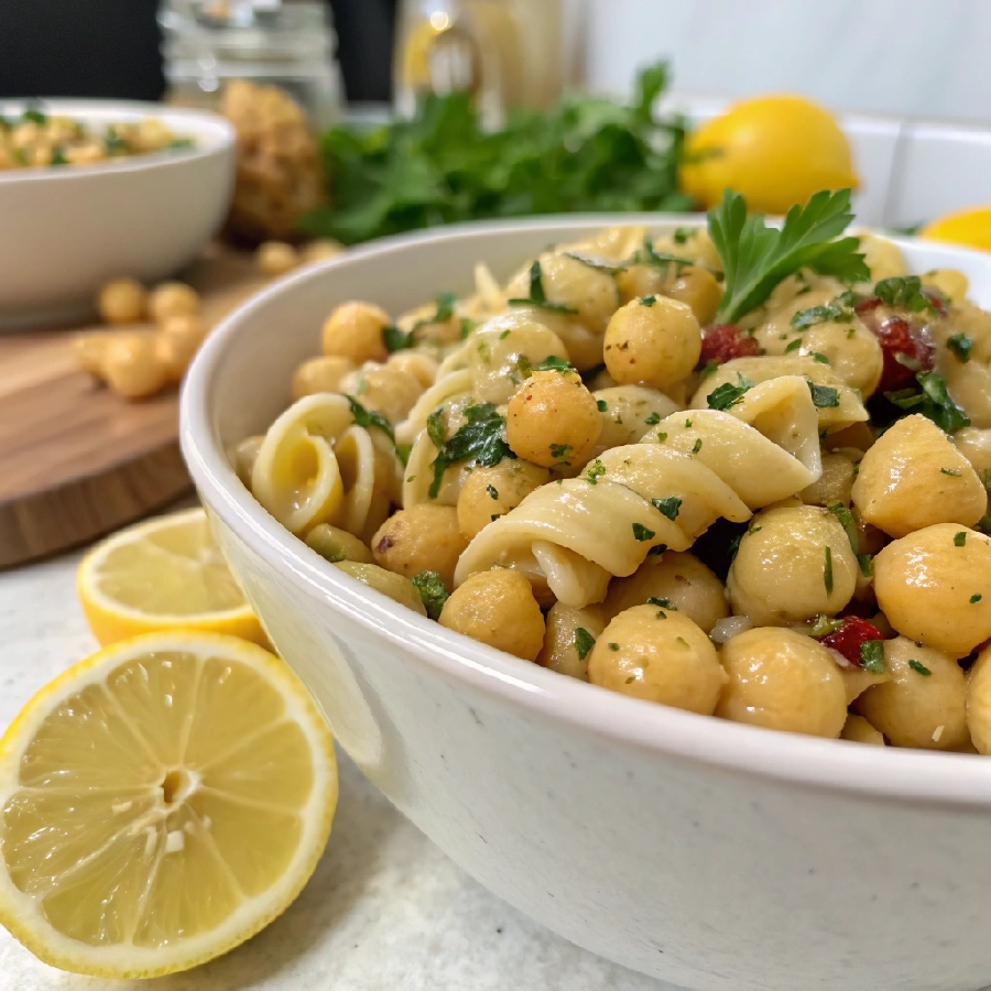 Lemon Herb Pasta Salad with Marinated Chickpeas