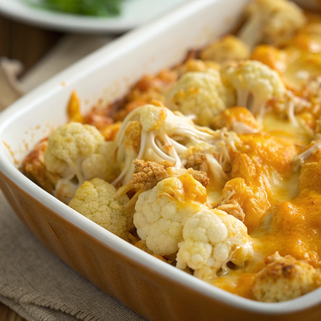 All the flavor of buffalo wings in a healthy, low-carb casserole. Loaded with tender cauliflower, shredded chicken, and a creamy, cheesy sauce, this high-protein dinner is satisfying and delicious.