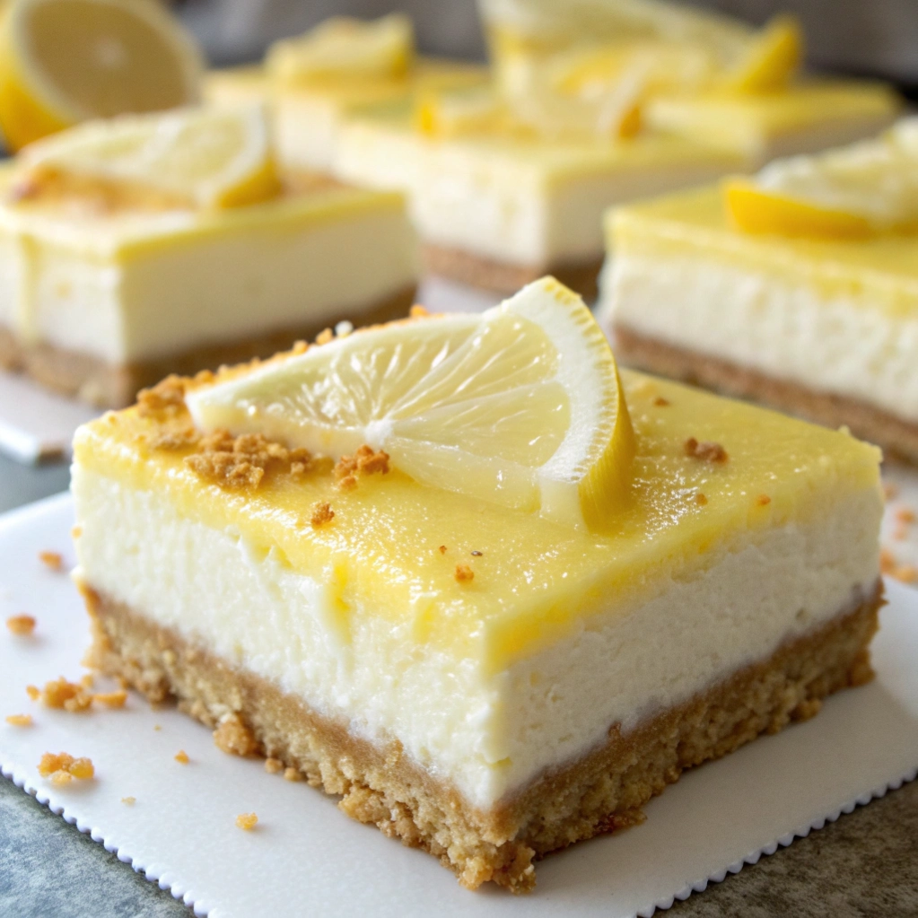 Creamy, tangy, and completely no-bake lemon cheesecake bars. A buttery graham cracker crust topped with a silky lemon filling that sets in the fridge. Perfect for parties and warm weather.