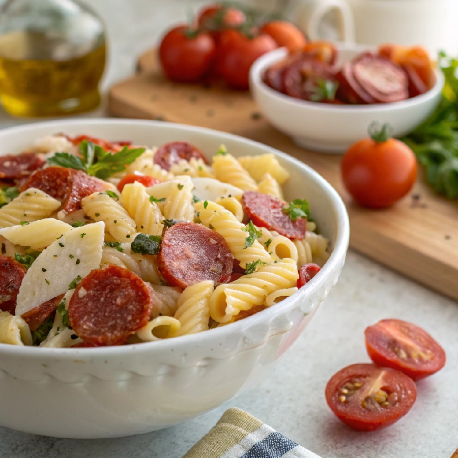 Zesty Italian Pasta Salad with Salami and Pepperoni
