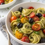 I made this on a Saturday afternoon with a tub of fresh cheese tortellini and a jar of good basil pesto sitting on my counter with no particular plan, and the moment those pillowy little pasta parcels soaked up that bright green herby dressing alongside the sun-dried tomatoes and fresh mozzarella I immediately understood why this combination has been beloved in Italian kitchens for generations. If you have been looking for pasta salad recipes that feel genuinely indulgent, elegant, and completely effortless all at once, this pesto tortellini version is the one that delivers on every single promise.