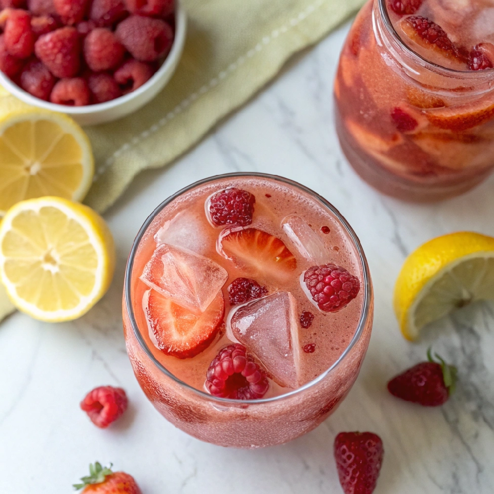 I made this raspberry strawberry lemonade on a warm and unhurried summer afternoon when I had both a basket of the most perfectly ripe red strawberries and a big bowl of the boldest deepest crimson raspberries sitting side by side on my counter at the exact same time, and the moment those two stunning berries blended together into the bright freshly squeezed lemon juice the entire pitcher filled with the most deeply rich, vibrantly red, and irresistibly fruity aroma that made me realize immediately that these two berries were always meant to share the same glass.