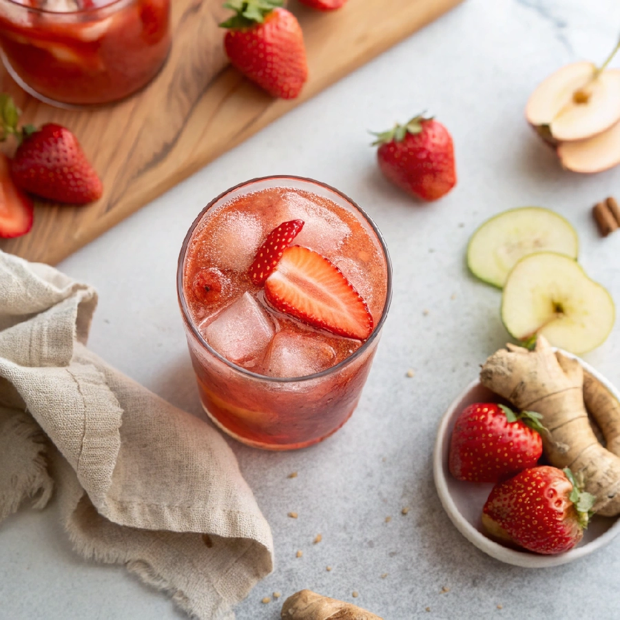 This drink works so beautifully because fresh apple juice brings a crisp, clean sweetness that lets the strawberry flavor shine fully, while the ginger adds a gentle, warming zing at the finish that makes every sip feel incredibly alive and refreshing in the most unexpected way. It reminds you a little of a homemade lemonade recipe in its brightness and balance but with an earthy, spiced warmth that makes it feel more grounding and nourishing than any classic strawberry lemonade.