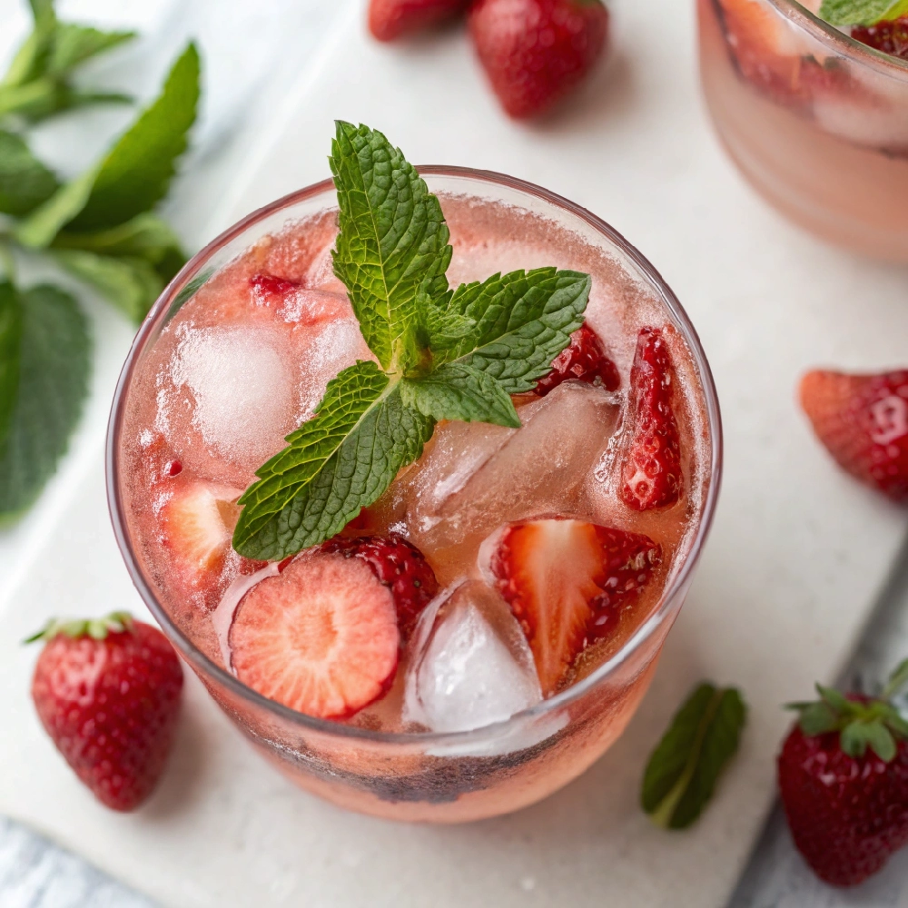 - Garnish with fresh strawberry slices, lemon rounds, and mint sprigs.