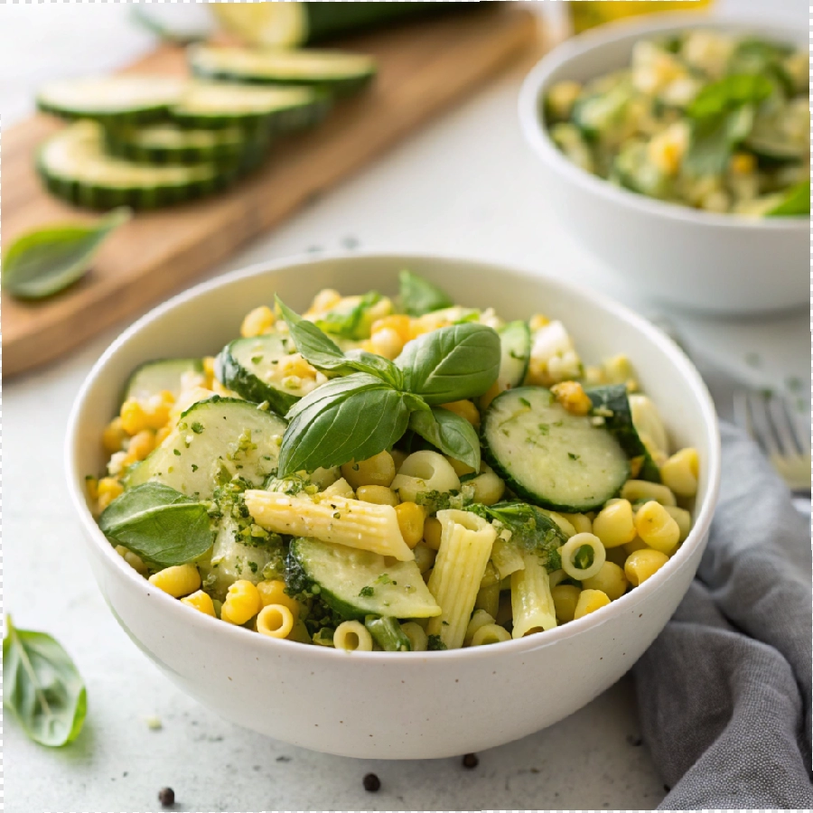 Summer Pasta Salad with Corn, Zucchini & Basil Vinaigrette