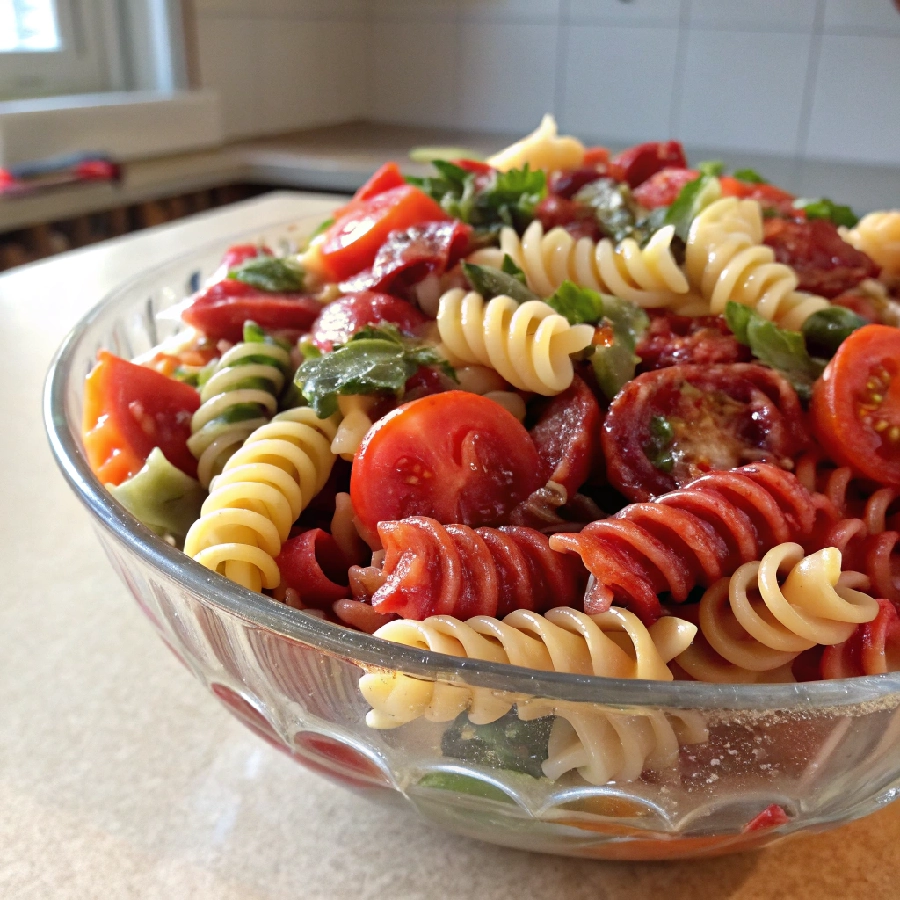 Stored in a sealed airtight container without the mozzarella and fresh herb garnish this easy cold pasta salad keeps fresh, colorful, and deeply flavorful for up to four days in the refrigerator, making it one of the most practical and visually satisfying pasta salad recipes and easy lunch ideas you can prepare once and enjoy confidently throughout the entire week.
